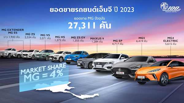 ส่วนเอ็มจีในประเทศไทยกวาดยอดขายได้ถึง 27,311 คัน และก้าวสู่ทศวรรษที่ 2 ด้วยแผนขับเคลื่อนแบรนด์ไปสู่ตำแหน่งท็อป 3 ของอุตสาหกรรมยานยนต์ไทย วางกลยุทธ์ขยายฐานลูกค้าไปยังคนรุ่นใหม่ด้วยการสร้างประสบการณ์ใหม่ๆ