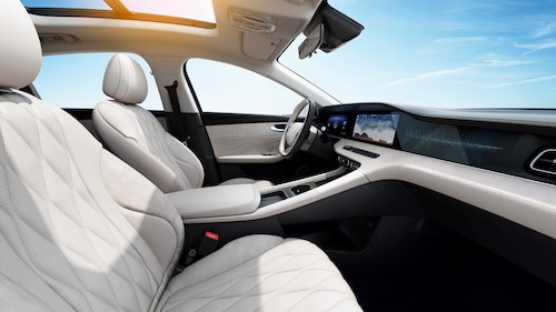 พื้นที่โดยสารตอนหลังกว้างขวาง สะดวกสบาย ดูล้ำสมัยด้วยจอกลางขนาด 12.3 นิ้วSuper- Long LCD Screens ที่มาพร้อมระบบอัจฉริยะ BANMA Intelligent Driving System