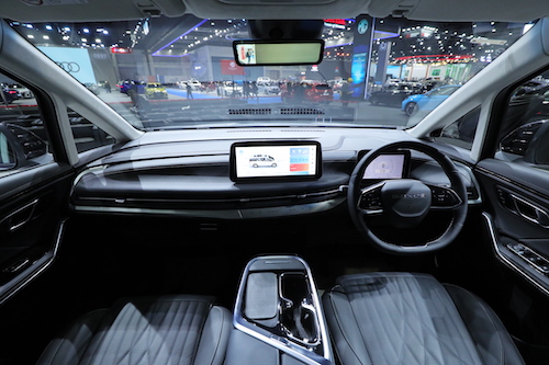 สำหรับงานมอเตอร์โชว์ในครั้งนี้ เอ็มจีได้นำ NEW MG MAXUS 9 รถลักชัวรี่ MPV ไฟฟ้า100% แบบ 7 ที่นั่ง เป็นพวงมาลัยขวาคันแรกของประเทศไทยและอาเซียน ที่พร้อมส่งมอบประสบการณ์อีวี สุดหรูหรา เพียบพร้อมด้วยฟังก์ชั่นและฟีเจอร์ล้ำสมัย ผสานลงตัวกับงานดีไซน์รูปโฉมใหม่ โดดเด่นด้วยหลังคา Dual Panoramic Sunroof ยาวถึงด้านหลังทำให้ห้องโดยสารดูโปร่ง โล่ง