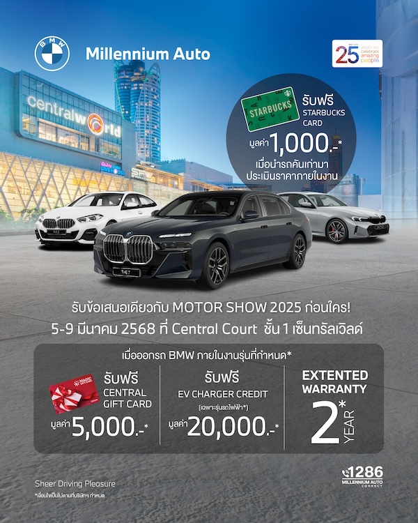มินิ มิลเลนเนียม ออโต้ ชวนคุณรับข้อเสนอ Motor Show 2025 ก่อนใคร พร้อมรับข้อเสนอแบบ 3 ต่อ