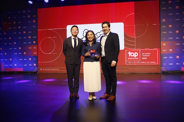‘มิชลิน ประเทศไทย’ นำโดย นางปาริชาติ ประจันพาณิชย์ (กลาง) ผู้อำนวยการฝ่ายทรัพยากรบุคคล และ มร. ทิมอน เดอ กราฟฟ์ (Timon de Graaff) (ซ้าย) ผู้จัดการฝ่ายสรรหาบุคลากรรับรางวัล ‘Top Employer Award 2025’ หรือ ‘สุดยอดองค์กรนายจ้างดีเด่น ประจำปี 2568’ จาก มร. บิลลี่ เอลเลียต (Billy Elliott) (ขวา) ผู้อำนวยการประจำภาคพื้นเอเชียแปซิฟิกของสถาบัน Top Employers Institute