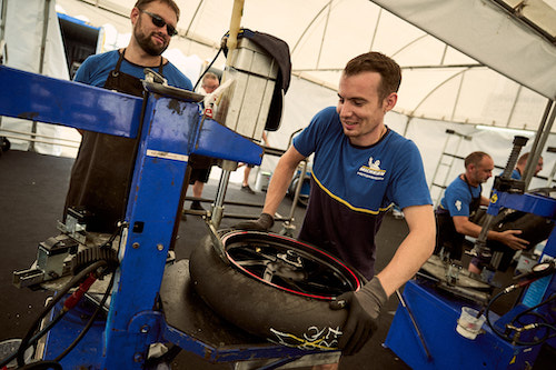 “ในแต่ละสนาม เรามีทีมผู้เชียวชาญพิเศษถึง 25 คน โดย 10 คนประจำเตรียมยางให้พร้อมตามออเดอร์ของทุกทีมแข่ง และจะประจำอยู่ที่พิทบ๊อกของแต่ละทีมแข่ง 1 คน ต่อ 2 ทีม หรือ 4คัน แต่ละสนามเราดำเนินการขนส่งยางโดยตู้ควบคุมอุณหภูมินำมาให้นักแข่งได้ใช้มากกว่า 1,200 เส้น และถูกนำมาใช้ 500-600 เส้นต่อสนาม