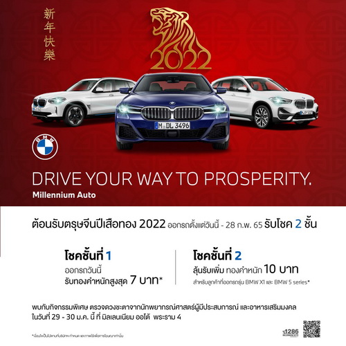 ต้อนรับตรุษจีนปีเสือทองออกรถวันนี้ รับโชค 2 ชั้น กับ บีเอ็มดับเบิลยู มิลเลนเนียม ออโต้