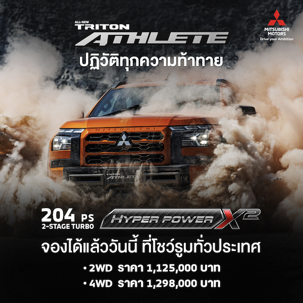 - ออล-นิว มิตซูบิชิ ไทรทัน แอทลีท รุ่นขับเคลื่อน 4 ล้อ ราคาจำหน่ายเริ่มต้นที่ 1,298,000 บาท