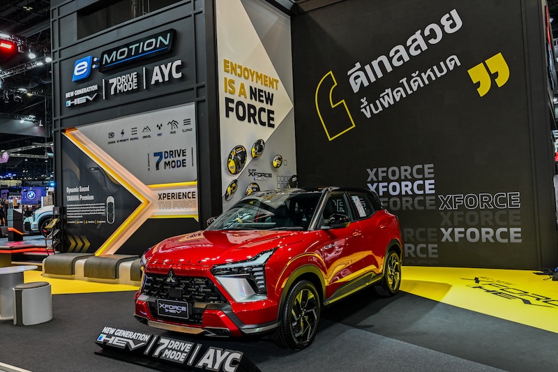 ALL-NEW MITSUBISHI XFORCE HEV Ultimate X สีแดง จัดแสดงในบูธมิตซูบิชิ พร้อมกราฟิกเทคโนโลยี HEV และโหมดขับขี่ 7 Drive Mode
