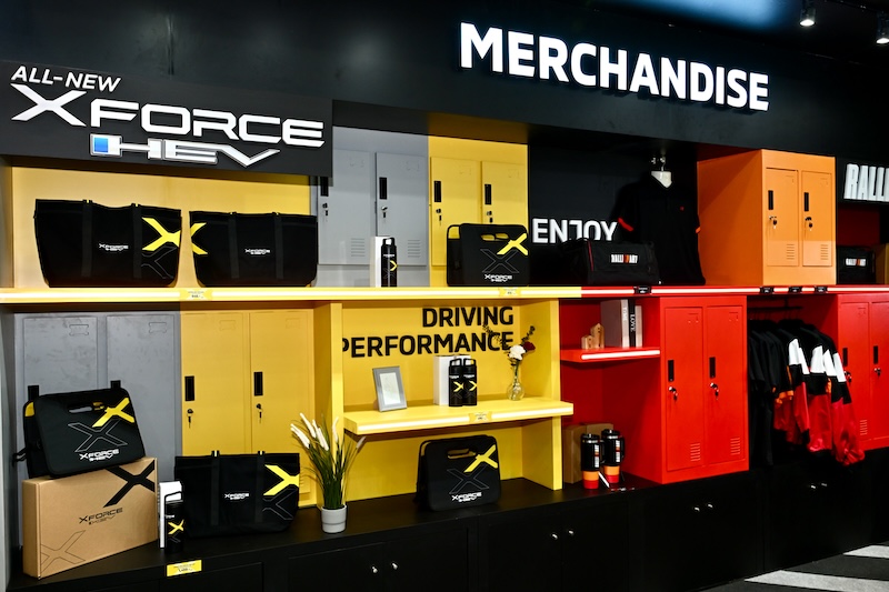 โซนสินค้าที่ระลึก ALL-NEW MITSUBISHI XFORCE HEV ภายในงาน Motor Expo 2025 พร้อมกระเป๋าและอุปกรณ์เสริมครบชุด