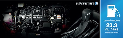 พบกับดีไซน์ และสิ่งอำนวยความสะดวกใหม่ ให้สมรรถนะการขับขี่เร้าใจ และประหยัดน้ำมันดีเยี่ยม ด้วย เครื่องยนต์ 2ZR-FXE ขนาด 1.8 ลิตร ผสานพลังกับมอเตอร์ไฟฟ้า และเกียร์ E-CVT ที่ช่วยประหยัดน้ำมันได้มากถึง 23.3 กม./ลิตร (อ้างอิงจาก ECO Sticker) เพิ่มความปลอดภัยในการขับขี่สูงสุดด้วยระบบ TOYOTA SAFETY SENSE
