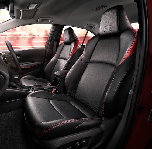 - เบาะหนังคู่หน้าสีดำตกแต่งด้วยสีแดงดีไซน์สปอร์ตพร้อมโลโก้ GR