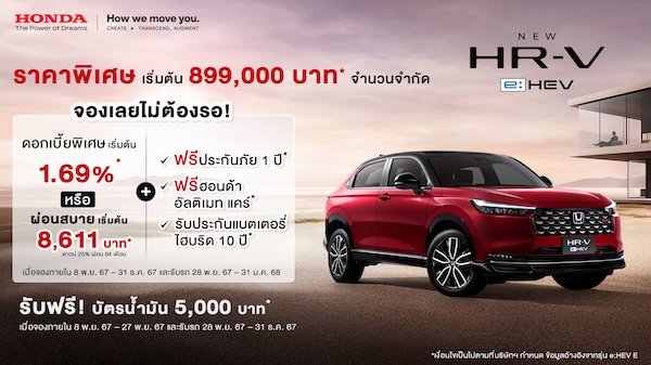 ฮอนด้า เอชอาร์-วี อี:เอชอีวี ใหม่ มาพร้อมหลากหลายข้อเสนอพิเศษ* ที่มอบความคุ้มค่าในการเป็นเจ้าของ อาทิ