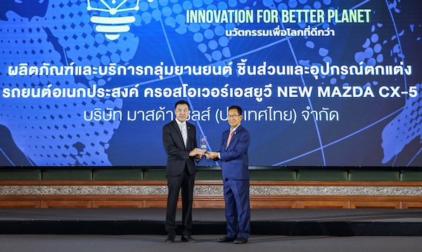 นับเป็นเกียรติอย่างยิ่งที่ยนตรกรรม NEW MAZDA CX-5 ได้รับลงคะแนนเสียงจากผู้ทรงคุณวุฒิและผู้บริโภคให้เป็นสุดยอดนวัตกรรมสินค้าและบริการแห่งปี 2568 ซึ่งมาสด้าให้คำมั่นสัญญาว่าจะมุ่งมั่นพัฒนายนตรกรรมและเทคโนโลยียานยนต์ต่อไปอย่างไม่หยุดยั้ง เพื่อส่งมอบนวัตกรรมยานยนต์อันล้ำสมัยที่สามารถตอบโจทย์ความต้องการที่หลากหลายให้กับลูกค้า