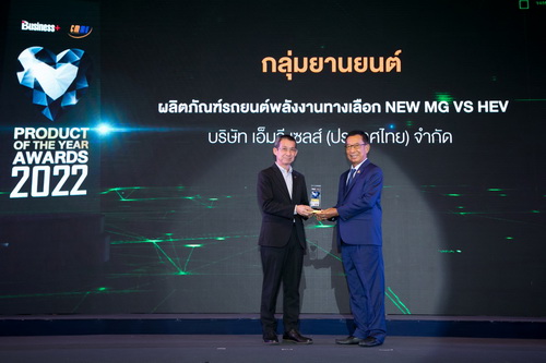 บริษัท เอสเอไอซี มอเตอร์ – ซีพี จำกัด และ บริษัท เอ็มจี เซลส์ (ประเทศไทย) จำกัด ผู้ผลิตและผู้จำหน่ายรถยนต์เอ็มจีในประเทศไทย รับรางวัลสุดยอดสินค้าและบริการแห่งปี “BUSINESS+ PRODUCT OF THE YEAR AWARDS 2022” กลุ่มผลิตภัณฑ์รถยนต์พลังงานทางเลือก โดย NEW MG VS HEV ได้รับการคัดเลือกจากผู้บริโภคให้เป็นสินค้าและบริการกลุ่มยานยนต์ยอดเยี่ยมแห่งปี