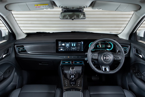 ห้องโดยสารของ NEW MG VS HEV ตอบโจทย์ทุกไลฟ์สไตล์ได้มากกว่าที่เคยกับ 2 ทางเลือก สีทูโทน (ดำ-ขาว) และสีดำ ครั้งแรกของรถกลุ่ม B-SUV ที่มาพร้อมกับ Dual Widescreen Cockpit เสริมความสะดวกสบายในการขับขี่และให้ผู้ใช้งานได้เต็มที่กับทุกกิจกรรม ด้วยจอคู่ HD ขนาดใหญ่ ที่ประกอบด้วย หน้าจอแสดงผลอัจฉริยะแบบ Full Virtual Dashboard ขนาด 12.3 นิ้ว