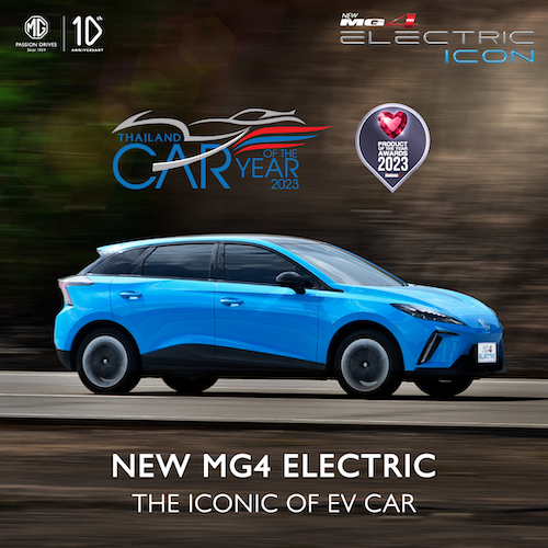 บริษัท เอสเอไอซี มอเตอร์ – ซีพี จำกัด และ บริษัท เอ็มจี เซลส์ (ประเทศไทย) จำกัด ผู้ผลิตและผู้จำหน่ายรถยนต์เอ็มจีในประเทศไทย เผยความสำเร็จหลัง NEW MG4 ELECTRIC เป็นรถไฟฟ้ารุ่นแรกที่คว้ารางวัล THAILAND EV OF THE YEAR 2023 ซึ่งจัดขึ้นโดยสมาคมผู้สื่อข่าวรถยนต์และรถจักรยานยนต์ไทย (สรยท.) ด้วยผลคะแนนโหวตจากสื่อมวลชนที่มากประสบการณ์ในสายยานยนต์