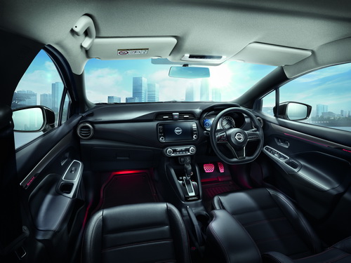 เช่น เบาะหน้า ฐานคันเกียร์ พรมปูพื้น และแป้นเหยียบแบบสปอร์ต ยกระดับความเท่ สปอร์ตไปอีกขั้น นอกจากนี้ นิสสันยังได้เพิ่มไฟ Ambient Light เป็นอุปกรณ์ตกแต่งพิเศษที่เติมเต็มอารมณ์สปอร์ตพรีเมียม