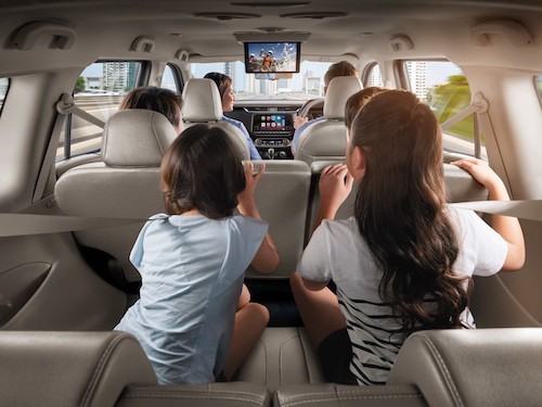 สำหรับผู้โดยสารในแถวสอง และสาม ยังสามารถรับชมความบันเทิงผ่านหน้าจอมอนิเตอร์ขนาดใหญ่ 11 นิ้ว ที่สามารถเชื่อมต่อกับโลกแห่งความบันเทิงออนไลน์ได้อย่างง่ายดาย ผ่านช่อง HDMI หรือการเชื่อมต่อแบบสมาร์ททีวี นอกจากนี้ยังมีช่องเชื่อมต่ออุปกรณ์และชาร์จไฟแบบ USB (Type A และ Type C) ถึง 5 จุด เพียงพอกับผู้โดยสารทุกคนบนรถที่สามารถชาร์จอุปกรณ์ได้หลายเครื่องในเวลาเดียวกัน