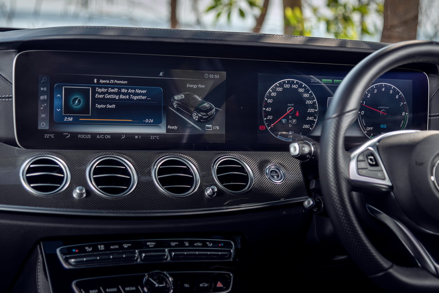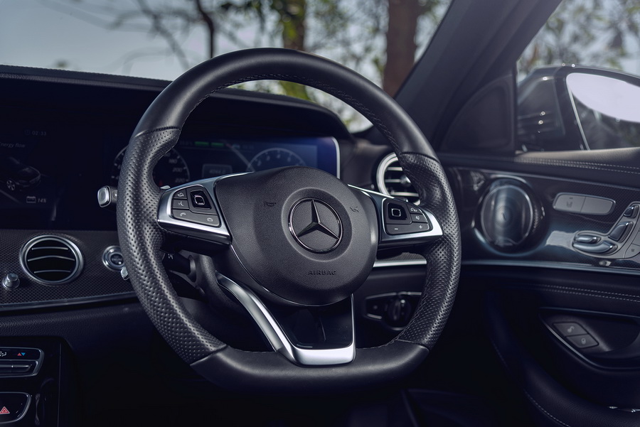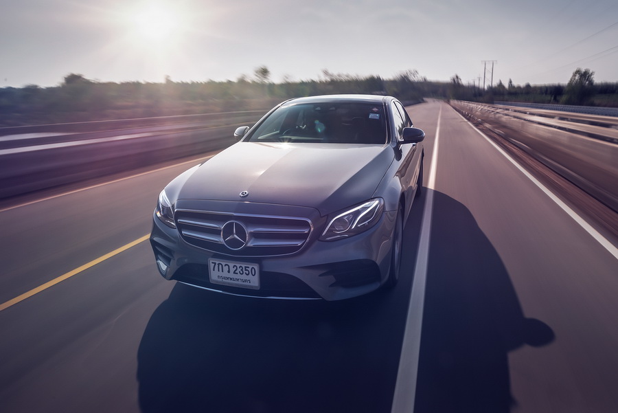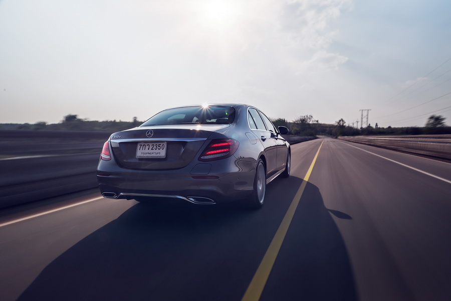 แม้จะทำงานโดยปราศจากกำลังเสริมของมอเตอร์ไฟฟ้า E 350e ของเราก็ยังคงพึ่งพาได้ มันเป็นรถที่ขับได้อย่างราบรื่นในทุกย่านความเร็ว อัตราเร่ง 0-100 กม./ชม. ใน 6.2 วินาที จัดว่าค่อนข้าง “เร็ว” เมื่อเทียบกับความเป็นรถซาลูนสำหรับการขับใช้งานในชีวิตประจำวัน แต่แทนที่จะกระโจนออกไป มันกลับแสดงออกอย่างนุ่มนวลเสียมากกว่า ใช่ครับ มันเร็ว, เร่งทันใจ ทว่าด้วยท่วงทีที่สุภาพ