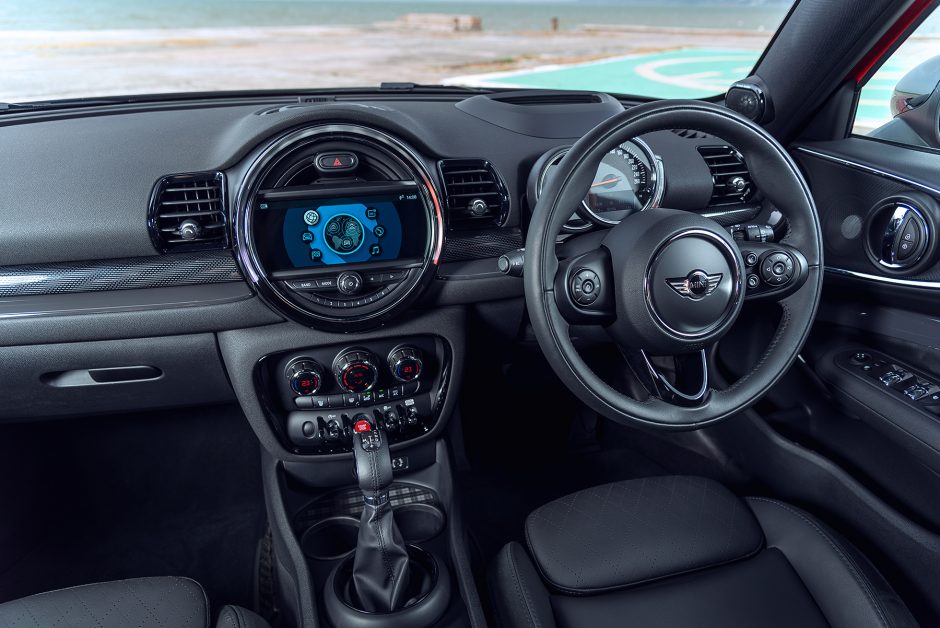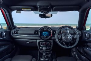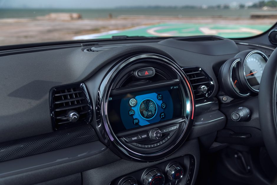 ส่วนด้านหน้าของห้องโดยสารนั้นยังมีอารมณ์ของความเป็น Mini ผ่านการปรับดีไซน์ให้มีความลงตัวกับความกว้างของมิติตัวรถ พร้อมด้วยการติดตั้งฟังก์ชันสำหรับการใช้งานแบบที่เราคุ้นเคยกันดี