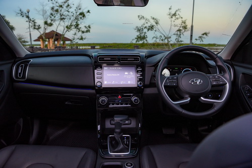 การออกแบบภายใน เครต้าได้ถ่ายทอดความพรีเมี่ยมที่แตกต่าง บริเวณด้านหน้าแผงหน้าปัดแนวยาวเชื่อมต่อไปกับแผงด้านข้างประตูเสมือนปีกที่โค้งรับกัน ดูเข้ม และมีพลังเหมือนช่วยโอบอุ้มผู้โดยสารในห้องเคบิน บริเวณแผงด้านหน้าติดตั้งหน้าจอระบบสัมผัสขนาด 8 นิ้วรองรับ Android Auto และ Apple Car Display