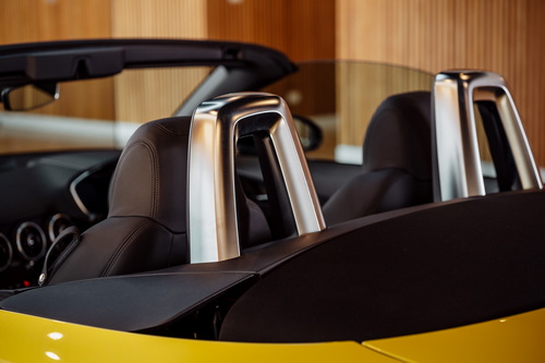 Rollover bar ตกแต่งด้วยสีอลูมิเนียม TT Roadster หน้าตาโฉบเฉี่ยวด้วยกระจังหน้าแบบ Honeycomb grille ลุคดุดัน อัพเดทชุดตกแต่งภายนอก Black Edition รอบคัน ล้ออัลลอยขนาด 19 นิ้ว ขนาด 9.0J x 19 พร้อมยาง ขนาด 245/35 R19 คุณภาพจัดเต็มนำเข้าจากยุโรปทั้งคัน