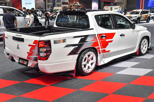 ทั้งด้านหน้า ด้านข้าง และด้านหลัง, ล้ออัลลอย, กรอบกระจกมองข้าง, มือเปิดประตู ด้านนอก และมือเปิดกระบะท้าย ที่มาพร้อมแผ่นกันกระแทกที่กระบะท้าย พร้อมโลโก้ RALLIART ก่อนเพิ่มอารมณ์ให้ภายในด้วยพรมปูพื้นรุ่นพิเศษ ขอบสีแดงพร้อมโลโก้ RALLIART เช่นกัน