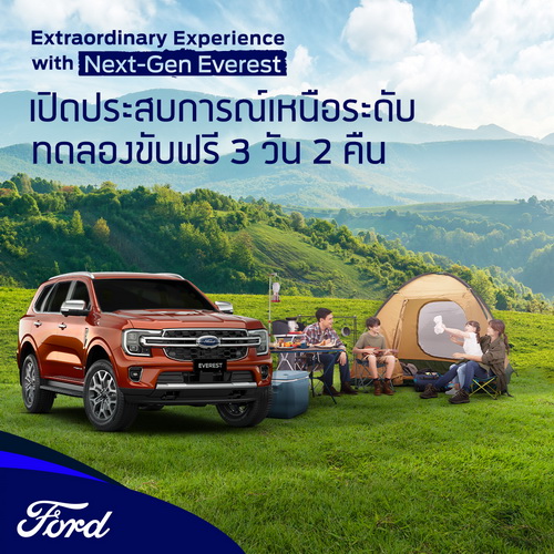 ฟอร์ด ประเทศไทย มอบแคมเปญพิเศษ ‘Extraordinary Experience With Next-Gen Everest’ ให้ลูกค้าที่สนใจรถยนต์ ฟอร์ด เอเวอเรสต์ เจเนอเรชันใหม่ ทดลองใช้และทดสอบสมรรถนะการทำงานของรถได้แบบจุใจ ด้วยการออกไปพักผ่อนเปิดประสบการณ์ใหม่ได้ช่วงสุดสัปดาห์ ฟรีตลอดระยะเวลา 3 วัน 2 คืน