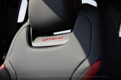 การตกแต่งรายละเอียดด้วยสีส้ม ‘โค้ด ออเรนจ์’ บนแผงหน้าปัด การตัดขอบชิ้นส่วนหลักๆ ในห้องโดยสาร รวมถึงบนเบาะที่นั่งแบบสปอร์ต ดูโดดเด่นยิ่งขึ้นอีกเมื่อเปิดไฟส่องสว่างสีอำพันอบอุ่นภายในห้องโดยสาร เสริมความหรูหราอีกขั้นด้วยพวงมาลัยหนังเกรดพรีเมียมจับกระชับมือพร้อมแถบบอกตำแหน่งองศาพวงมาลัยหรือ On- centre mark และแป้นแพดเดิลชิฟต์เคลือบแมกนีเซียม