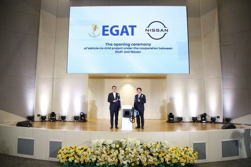โดยในพิธี ได้รับเกียรติจาก ฯพณฯคาซูยะ นาชิดะ เอกอัครราชทูตญี่ปุ่นประจำประเทศไทย กล่าวแสดงความยินดี และ ดร. ศิริ จิระพงษ์พันธ์ ที่ปรึกษารัฐมนตรีว่าการกระทรวงพลังงาน ร่วมเป็นประธานในพิธีเปิดโครงการความร่วมมือระหว่าง บริษัท นิสสัน มอเตอร์ (ประเทศไทย) จำกัด กับ กฟผ. นำร่องศึกษาการแปลงพลังงานระหว่างยานยนต์ไฟฟ้ากับระบบไฟฟ้า (Vehicle-to-Grid หรือ V2G)