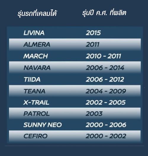 สำหรับลูกค้าที่เข้าข่าย กรุณาติดต่อผู้จำหน่าย หรือนิสสัน คอลเซ็นเตอร์ เพื่อนัดหมายเข้ารับบริการโดยเร็ว เพื่อความปลอดภัยในการขับขี่ โดยลูกค้าที่อยู่ในเขตกรุงเทพฯและปริมณฑล ติดต่อที่หมายหมายเลข 02 401 9600 และสำหรับพื้นที่ต่างจังหวัด ติดต่อที่หมายเลข 1-800-900-500 ตลอด 24 ชั่วโมง