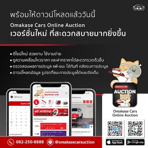 สำหรับลูกค้าที่สนใจเข้าร่วมประมูล สามารถดาวน์โหลดแอปพลิเคชัน “Omakase Cars Online Auction” ได้จาก App Store และ Google Play Store