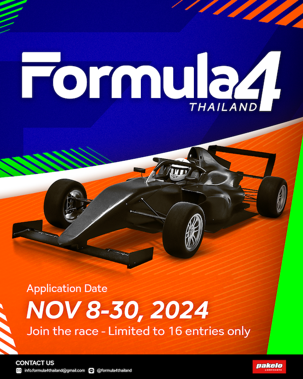 นักแข่งที่มีความฝันและหลงใหลในการแข่งขันรถยนต์ทางเรียบแบบล้อเปิด โอกาสของคุณมาถึงแล้ว!! “Pakelo Lubricants Thailand น้ำมันเครื่องนำเข้าจากประเทศอิตาลี” เปิดโอกาสให้นักแข่งที่มีอายุ 15 ปี ขึ้นไปได้มาชิงชัยกันในการแข่งขันรถล้อเปิดรายการแรกและรายการเดียวของประเทศ “Formula 4 Thailand” รับสมัครพร้อมกันในวันที่ 8-30 พฤศจิกายน 2567 จำกัดเพียง 16 คนเท่านั้น!!