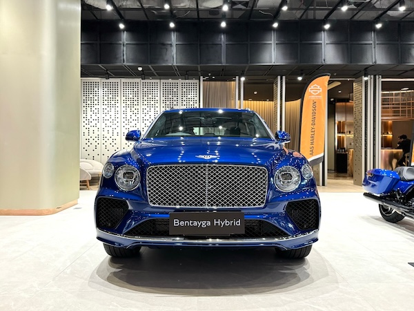 ต่อเนื่องด้วยอัครยนตรกรรมแบบอเนกประสงค์จากประเทศอังกฤษ เบนท์ลีย์ เบนเทก้า ไฮบริด (Bentley Bentayga Hybrid) ในเฉดสีน้ำเงิน Sequin Blue โดดเด่นด้วยล้ออัลลอยด์ 5 ก้าน ขนาด 21 นิ้ว และไฟหน้าแบบ Crystal LED ที่สะท้อนความสง่างาม ผสานสมรรถนะเครื่องยนต์รุ่น V6 แบบไฮบริดที่ให้พละกำลังกว่า 443 แรงม้า และแรงบิด 700 นิวตันเมตร