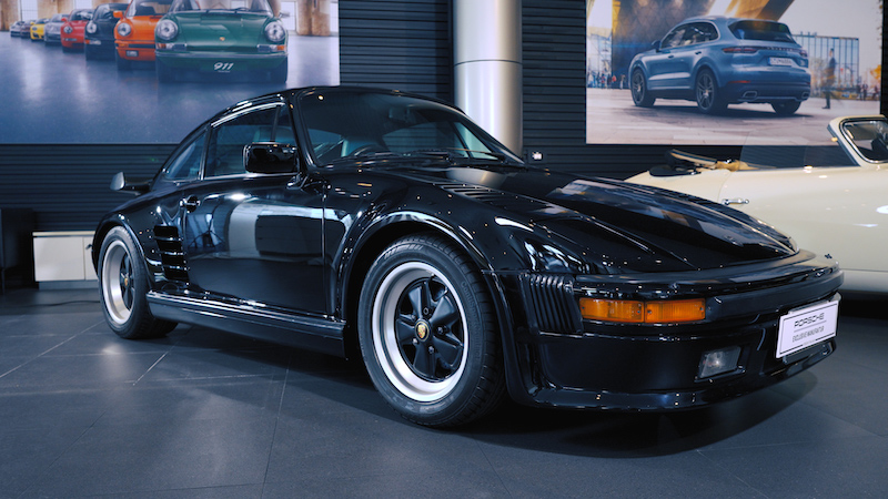 911 Turbo Flat nose ปี 1987 ผลงานแฮนด์เมดสุดพิเศษจาก Porsche Sonderwunsch ซึ่งเป็นหนึ่งในรถที่ยากที่สุดที่จะสามารถพบได้ เนื่องจากเป็นรถแฮนด์เมด ในยุคแรกเริ่มของโรงงานที่เป็นอาคารอิฐเก่าแก่ (FACTORY 1)