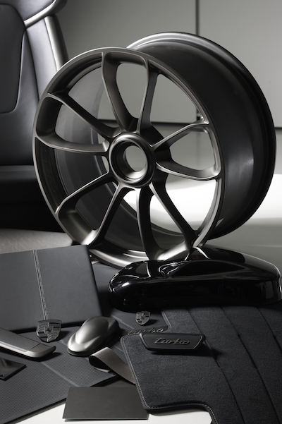 ซึ่งนักออกแบบได้พัฒนาโทนสีเทาเมทัลลิก (metallic grey) อันหรูหรานี้สำหรับรุ่น เทอร์โบ (Turbo) โดยเฉพาะ และถูกนำไปใช้กับชิ้นส่วนที่ถูกเลือกสรรไว้ทั้งภายนอกและภายใน ทำให้รุ่นเทอร์โบ (Turbo) มีรูปลักษณ์ที่ชัดเจนมากขึ้น ปอร์เช่จะนำเสนอความแตกต่างนี้กับรถทุกรุ่นอย่างต่อเนื่อง
