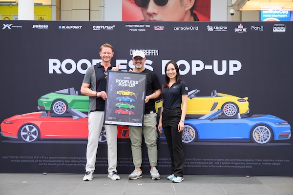 เพื่อเฉลิมฉลองเสน่ห์เฉพาะตัวของรถ ปอร์เช่ (Porsche) เปิดประทุน ปอร์เช่ ประเทศไทย จึงร่วมกับ Das Treffen ซึ่งเป็นผู้จัดงานการรวมตัวของแฟนๆ ปอร์เช่ (Porsche) ที่ใหญ่ที่สุดในเอเชียตะวันออกเฉียงใต้ จัดงาน “ Das Treffen: Roofless” ป๊อปอัป ณ เซ็นทรัลเวิลด์ กรุงเทพฯ นำเสนอที่สุดแห่งเสน่ห์ของยนตรกรรมเปิดประทุน พร้อมมอบประสบการณ์พิเศษให้กับผู้หลงใหลในความงามของปอร์เช่