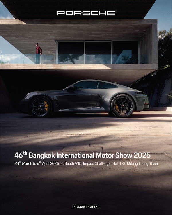 ปอร์เช่ ประเทศไทย โดย เอเอเอส กรุ๊ป ผู้นำเข้ารถยนต์ปอร์เช่อย่างเป็นทางการ ขอเชิญทุกท่านสัมผัสประสบการณ์สุดพิเศษกับยนตรกรรมสปอร์ตหลากหลายรุ่นที่บูธปอร์เช่ (A15) ณ งาน บางกอก อินเตอร์เนชั่นแนล มอเตอร์โชว์ ครั้งที่ 46 ระหว่างวันที่ 24 มีนาคม – 6 เมษายน 2568 ณ อิมแพ็ค ชาเลนเจอร์ ฮอลล์ 1-3 เมืองทองธานี