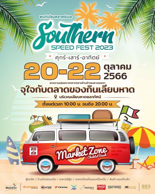 นอกจากนี้ ยังมีโซน Market ที่รวมเอาร้านอาหารขึ้นชื่อของท้องถิ่นกว่า 80 ร้าน มาเสิร์ฟให้นักท่องเที่ยวทั้งชาวไทยและต่างชาติ ได้เต็มอิ่มกับอาหารที่หลากหลายระหว่างเข้าชมการแข่งขัน ณ บริเวณ Southern Speed Fest เลียบหาดชลาทัศน์