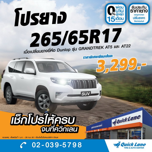 - ยางดันลอป รุ่น GRANDTREK AT5 และ AT22 ขนาด 265/65R17 ราคาพิเศษเพียงเส้นละ 3,299 บาท