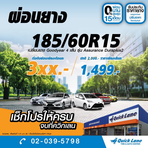 ควิกเลน ศูนย์บริการยางและรถยนต์ประเภทเร่งด่วน ส่งความสุขต้อนรับปีใหม่เอาใจคนรักรถ ด้วยแคมเปญ ‘เช็กโปรให้ครบ จบที่ควิกเลน’ มอบข้อเสนอสุดพิเศษและสิทธิพิเศษสุดคุ้มมากมาย ทั้งยางแบรนด์ชั้นนำระดับโลกในราคาสุดเร้าใจ ลดกระหน่ำอะไหล่รถยนต์และน้ำมันเครื่องเปี่ยมคุณภาพ พร้อมด้วยบริการที่สะดวก วางใจได้จริง ทุกวัน ตั้งแต่วันนี้ – 31 มกราคม 2565 ที่ควิกเลนทุกสาขา ทั่วประเทศ