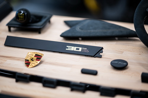 สำหรับตราสัญลักษณ์ครบรอบ 30 ปี หมายเลข ‘30’ สีทองขนาดใหญ่ จะติดตั้งบนประตู และฝากระโปรงหน้า เสริมด้วยรายชื่อทั้ง 29 คนของอดีตแชมเปี้ยนรายการ Porsche Supercup พ่นด้วยสีทอง และเคลือบเงาด้วยแลคเกอร์ เมื่องานสีทั้งหมดเสร็จสิ้นลง