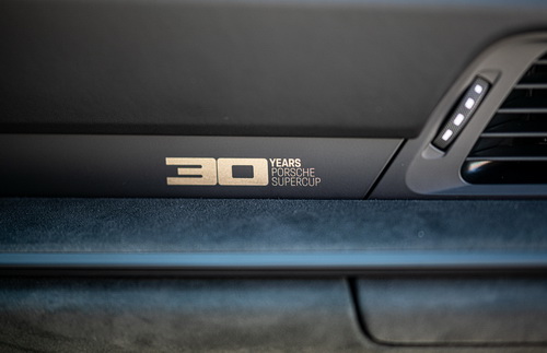 พร้อมตราสัญลักษณ์ครบรอบ 30 ปี และลวดลายกราฟฟิก multicolour pixel mesh บริเวณซุ้มล้อหลังทั้ง 2 ฝั่ง และที่สำคัญอีกหนึ่จุด คือการประดับรายชื่อของผู้ชนะทั้ง 29 คนในการแข่งขัน Porsche Supercup ทุกครั้งที่ผ่านมา ด้วยสีทองลงบนกันชนท้าย