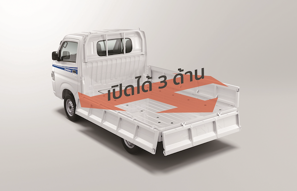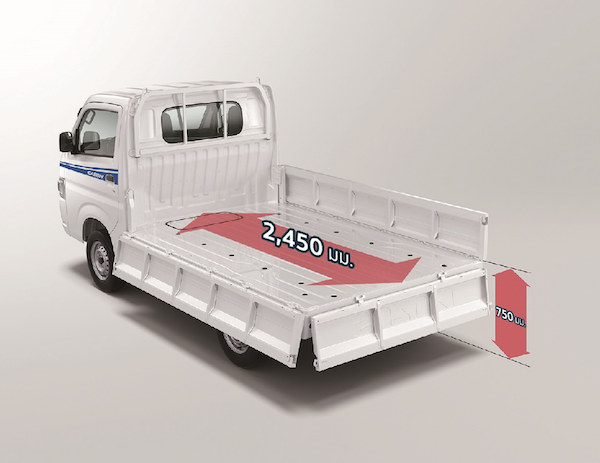 กระบะบรรทุกแบบเรียบ เพิ่มความกว้างและความยาวของพื้นที่บรรทุกอยู่ที่ 1,670 มม. และ 2,450 มม. สามารถเปิดได้ทั้ง 3 ด้าน ขนถ่ายสัมภาระได้สะดวกและรองรับการใช้งานหลากหลายรูปแบบ รับน้ำหนักบรรทุกสูงสุดถึง 945 กิโลกรัม
