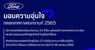 ฟอร์ด ประเทศไทย ต้อนรับเทศกาลวันหยุดยาว ส่งแคมเปญมอบความมั่นใจตลอดการเดินทางในช่วงเทศกาลสงกรานต์ ด้วยการจัดบริการช่วยเหลือฉุกเฉินบนท้องถนน 24 ชั่วโมง (Roadside Assistance) พร้อมบริการรถทดแทนระหว่างซ่อม และบริการส่งมอบรถให้แก่ลูกค้าถึงที่โดยไม่มีค่าใช้จ่ายสำหรับเจ้าของรถฟอร์ดที่อายุไม่เกิน 3 ปี หรือมีระยะทางการใช้งานไม่เกิน 100,000 กิโลเมตร (แล้วแต่ระยะใดถึงก่อน) ระหว่างวันที่ 6-18 เมษายน 2565 “ฟอร์ดตระหนักดีว่าช่วงเทศกาลสงกรานต์นั้นเป็นช่วงเวลาสำคัญที่ลูกค้าจะเดินทางไปใช้เวลาที่มีค่ากับครอบครัวและคนรัก ซึ่งสอดคล้องกับความมุ่งมั่นของฟอร์ดในการยกระดับความพึงพอใจของลูกค้าและตอกย้ำการดูแลลูกค้าเสมือนคนในครอบครัว (Treat Customers Like Family) เราจึงได้จัดบริการพิเศษที่จะช่วยให้ลูกค้าขับขี่ด้วยความอุ่นใจที่มากขึ้นด้วยการยกระดับบริการช่วยเหลือฉุกเฉินบนท้องถนน 24 ชั่วโมง …