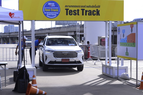 TEST TRACK FOR AUTOMATED DRIVER ASSIST SYSTEM พื้นที่สำหรับทดลองใช้งานระบบช่วยเหลือที่ติดตั้งมากับรถ เช่น ระบบถอยจอดอัตโนมัติ ระบบเบรคอัตโนมัติ ระบบหลบหลีกสิ่งกีดขวาง ฯลฯ ภายใต้คำแนะนำ และการดูและของผู้เชี่ยวชาญจากผู้แทนจำหน่าย และจากโครงการ “ขับเป็น…ขับปลอดภัย กับ สื่อสากล” บริเวณลานจอดรถขนส่ง หลังอาคารชาลเลนเจอร์
