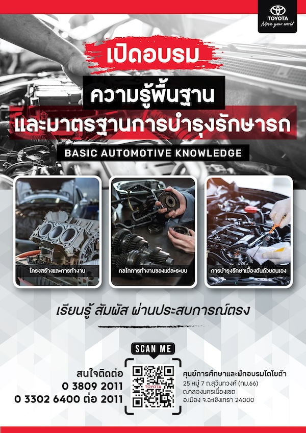 พร้อมสร้างประสบการณ์ในการสัมผัสกับเครื่องยนต์และรถยนต์จริง ณ ศูนย์การศึกษาและฝึกอบรมโตโยต้า ถนนสุวินทวงศ์ อ.เมืองฉะเชิงเทรา จ.ฉะเชิงเทรา