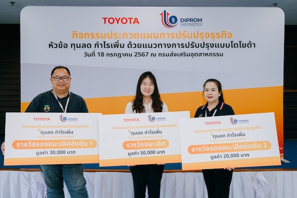 โตโยต้า ธุรกิจชุมชนพัฒน์ ร่วมกับกรมส่งเสริมอุตสาหกรรม มอบรางวัลแก่วิสาหกิจชุมชนและผู้ประกอบการที่เข้าร่วมกิจกรรม “การประกวดแผนการปรับปรุงธุรกิจ Community Improvement Contest หัวข้อ ทุนลด กำไรเพิ่ม ด้วยแนวทางการปรับปรุงธุรกิจแบบโตโยต้า”