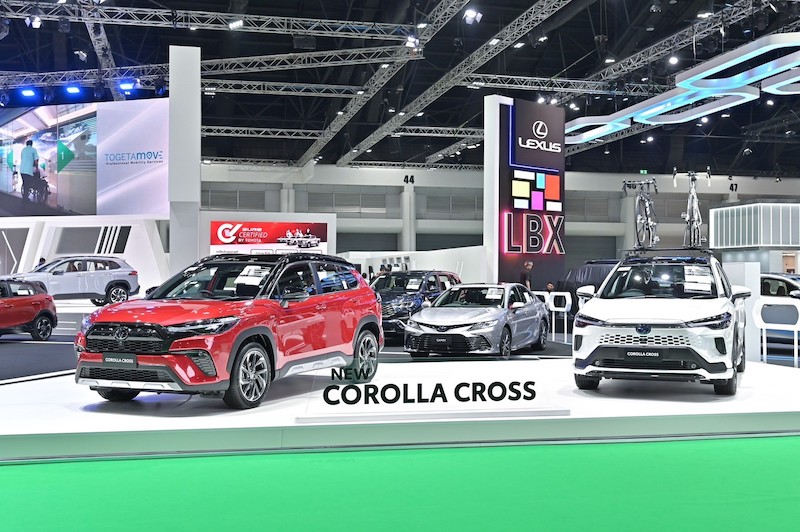 ในครั้งนี้ เรานำโตโยต้า โคโรลล่า ครอส ใหม่ ที่ได้รับการตอบรับเป็นอย่างดีเยี่ยมจากลูกค้า ไปตั้งแต่เปิดตัวช่วงเดือนกุมภาพันธ์ที่ผ่านมา นอกจากนี้ เรายังนำทัพรถยนต์ไฟฟ้าระบบไฮบริด อาทิ ยาริส ครอส, คัมรี, โคโรลล่า อัลติส และ อินโนวา ซีนิกซ์ มาให้ทุกท่านได้สัมผัสกันตามความชื่นชอบและไลฟ์สไตล์ของตัวเองด้วย