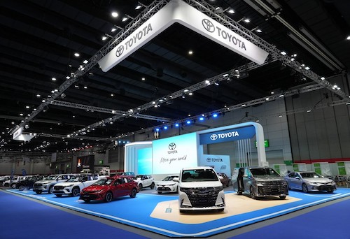 นายณัทธร ศรีนิเวศน์ รักษาการผู้ช่วยกรรมการผู้จัดการใหญ่ บริษัท โตโยต้า มอเตอร์ ประเทศไทย จำกัด เปิดบูธโตโยต้าภายใต้แนวคิด “Multiways for A Better World” หรือ “ทุกเส้นทางขับเคลื่อน มุ่งมั่นเพื่อโลกที่ดีกว่า” ยกขบวนรถยนต์ไฮบริด พร้อมเครื่องยนต์เบนซิน และดีเซล หลากหลายรุ่นมาให้ลูกค้าสัมผัส และเลือกเป็นเจ้าของกันอย่างจุใจ นำโดย