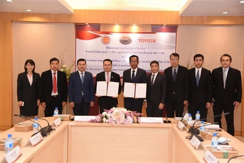 นายรุ่งโรจน์ ขันชะลี ผู้ช่วยกรรมการผู้จัดการใหญ่ สายงานบริการลูกค้า บริษัท โตโยต้า มอเตอร์ ประเทศไทย จำกัด ลงนามความร่วมมือโครงการ T-TEP กับ นายสง่า แต่สายเชื้อ ผู้ช่วยเลขาธิการ คณะกรรมการการอาชีวศึกษา เพื่อร่วมกันยกระดับการเรียนการสอนในหลักสูตรวิชาช่างยนต์ และหลักสูตรช่างซ่อมตัวถังและสีรถยนต์ ให้ทันต่อความก้าวล้ำของเทคโนโลยีสมัยใหม่