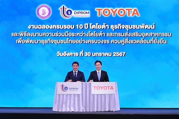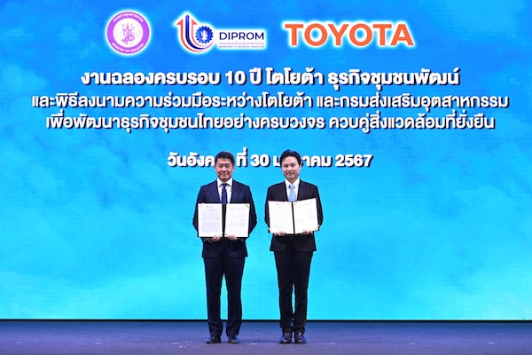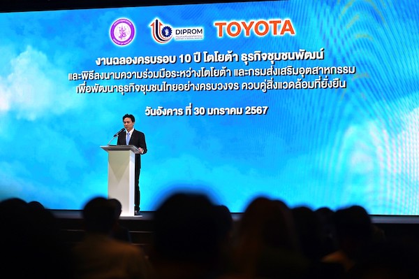 ร่วมเป็นเกียรติภายในงานฉลองความสำเร็จครบรอบ 10 ปี โครงการโตโยต้าธุรกิจชุมชนพัฒน์ และพิธีลงนามบันทึกข้อตกลงความร่วมมือกับกรมส่งเสริมอุตสาหกรรม กระทรวงอุตสาหกรรม เพื่อยกระดับ การพัฒนาธุรกิจชุมชนไทยอย่างครบวงจร ควบคู่สิ่งแวดล้อมที่ยั่งยืน ณ TOYOTA ALIVE เมื่อวันอังคารที่ 30 มกราคม 2567 ที่ผ่านมา