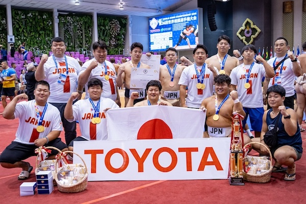 มร.คิมิโอ มินามิ ผู้อำนวยการ บริษัท โตโยต้า มอเตอร์ คอร์ปอเรชั่น และ มร.โนริอากิ ยามาชิตะ กรรมการผู้จัดการใหญ่ บริษัท โตโยต้า มอเตอร์ ประเทศไทย จำกัด พร้อมด้วยคณะผู้บริหารเข้าร่วมเป็นเกียรติในพิธีมอบรางวัลการแข่งขันซูโม่ชิงแชมป์โลก ประจำปี 2568